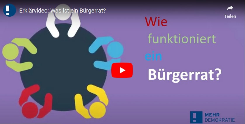 In viereinhalb Minuten erfahren Sie die Grundzüge, was die wesentlichen Elemente eines Bürgerrats sind.